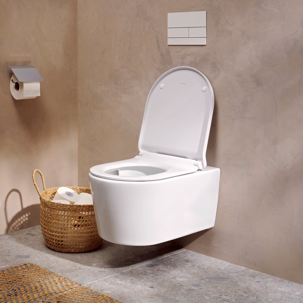 hansgrohe EluPura S Wall hung WC Set 540 AquaHelix Flush, HygieneEffect with WC seat and cover with SoftClose and QuickRelease, Slim